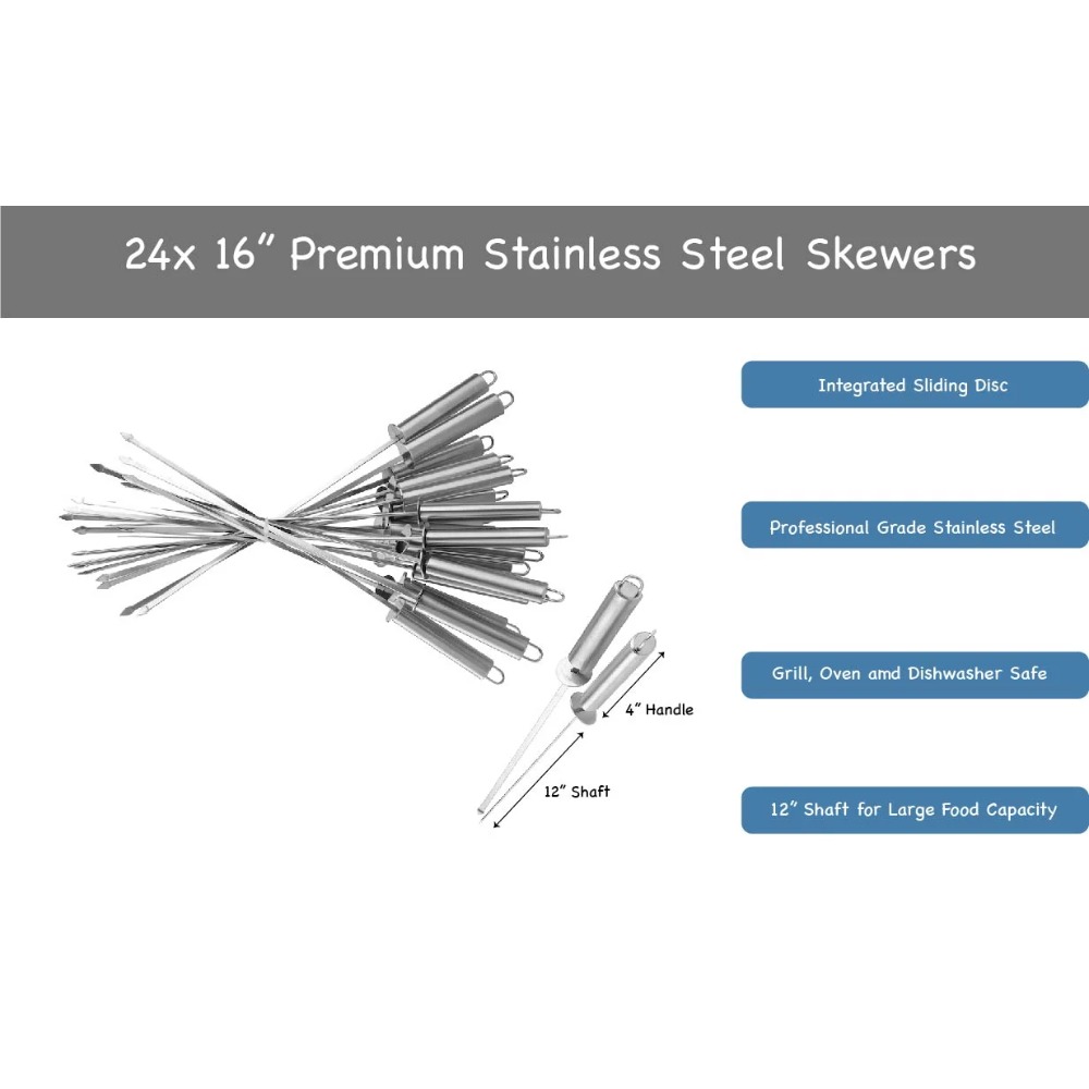 - Perfect Gift: This 24pc 16″ stainless steel skewer value set already packaged in a nice and sturdy case, is the perfect grilling companion for BBQ lovers and makes the perfect gift for any occasion; Birthdays, Father’s Day, Mother’s Day, Housewarming and Christmas