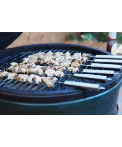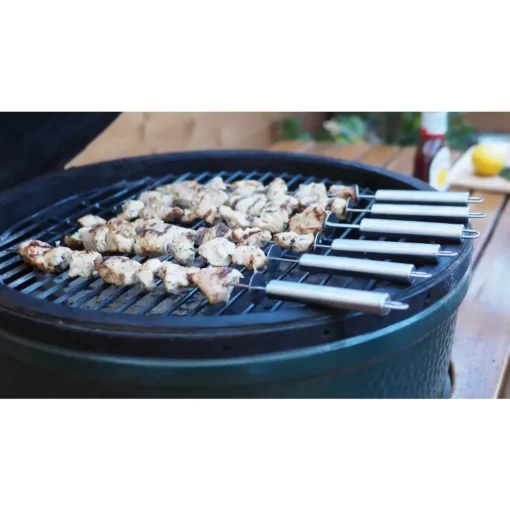 - Conveniently Designed: The stainless steel skewers are designed flat and wide to stop food from spinning or moving around when turning them on the grill. The attached push slider helps to easily push cooked food off for serving
