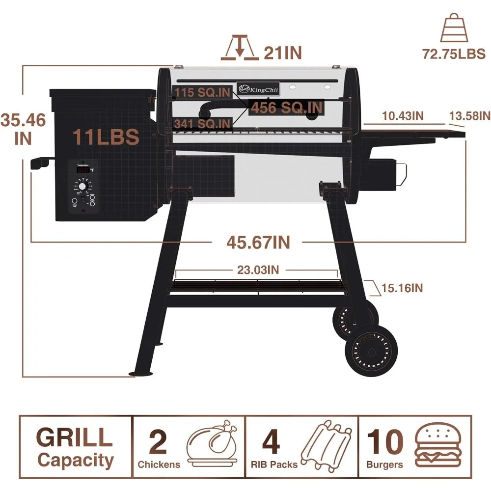 - Large Capacity: Large cooking capacity that’s ideal for a 3-12 family party! 341 SQ.IN. Main rack + 115 SQ.IN. insulation rack. The capacity for 10 burgers, 4 racks of ribs or 2 whole chickens.