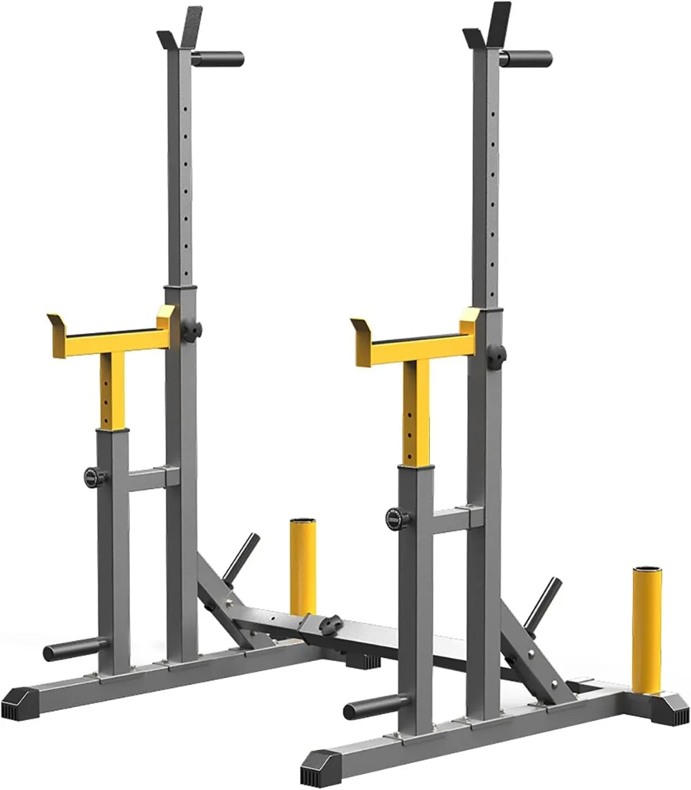 - 💪 [Multi-Adjustable Squat Rack]: This product is equipped with 2 barbell storage racks, suitable for men and women who like to exercise at home and in the gym. It allows you to easily carry out various exercises, including push ups, double poles, push ups, shoulder presses, squats, inclines and overhead weight lifting, and effectively increases the muscles of legs and arms.