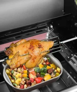 - Rotisserie Kit with Motor: Slow-roast a crispy brown whole chicken but juicy and tender meat inside by the strong power of rear burner for high-heat searing or slow spit roasting, which offers added and unparalleled versatility during cookouts.