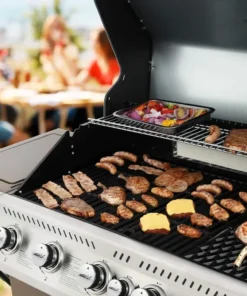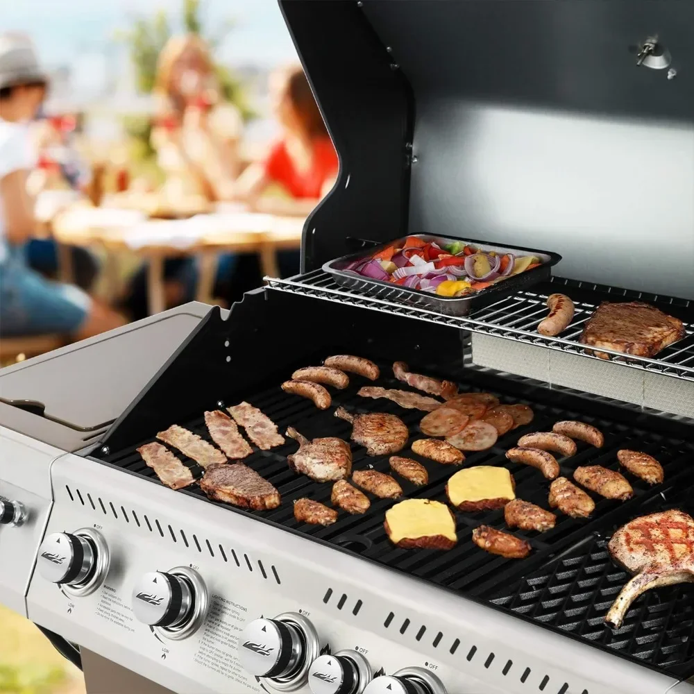 - Spacious Cooking Space: 738 sq. in. cooking space in total, including 566 sq. in. porcelain-enameled cast iron cooking grates and 172 sq. in. chrome plated steel warming rack that accommodate about 18 hamburgers simultaneously.