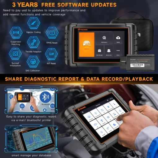support one-click send/share your vehicle health report via E-mail/Bluetooth and one-click feedback your problem to the foxwell technical support team.