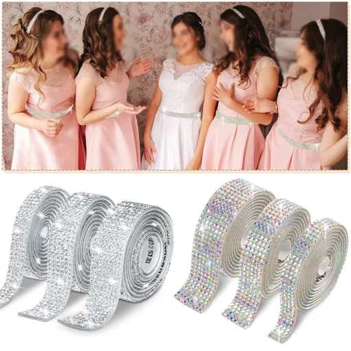 Self-adhesive Rhinestone Strip Decorative Tape Diamond Ribbon DIY Sticker Crystal Arts Crafts Rubber Backed Drill Wall Plaster